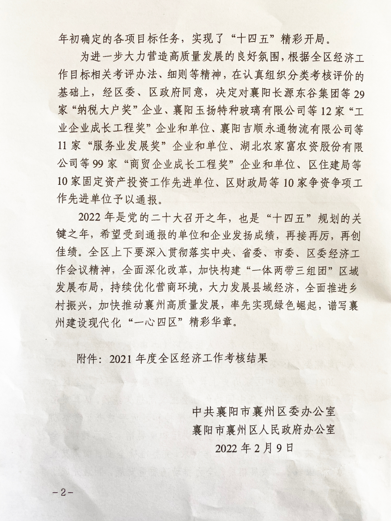开工第一天,时瑞达重工收到了区政府发来的“大红包”。襄州区为进一步大力营造高质量发展的良好氛围,根据全区经济工作目标相关考评办法、细则等精神,对FH网页版等29家纳税500万元以上的企业进行了嘉奖。