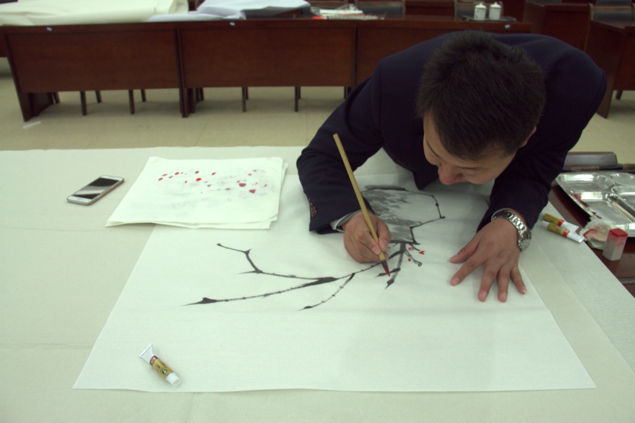 09时30分,公司领导葛国强先生主持召开了此次书画会,对五位书画名家的到来表示热烈的欢迎及诚挚的谢意,预祝此次新春书画笔会圆满成功并送上了新春的祝福。